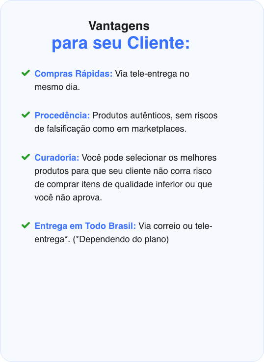 Sim! Você tem total liberdade para escolher os produtos que deseja disponibilizar na sua loja, garantindo que apenas itens de sua confiança sejam oferecidos aos seus clientes. A única regra é que os produtos estejam disponíveis no estoque do distribuidor. Ele oferecerá várias marcas e produtos, e você pode remover aqueles que não deseja vender, mantendo apenas os que gosta e confia. No entanto, você não pode adicionar produtos que o distribuidor não tenha em estoque.